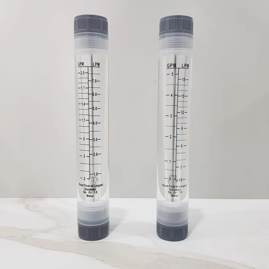 - Scale on LPM (liter per minute) and GPM (gallon per minute).