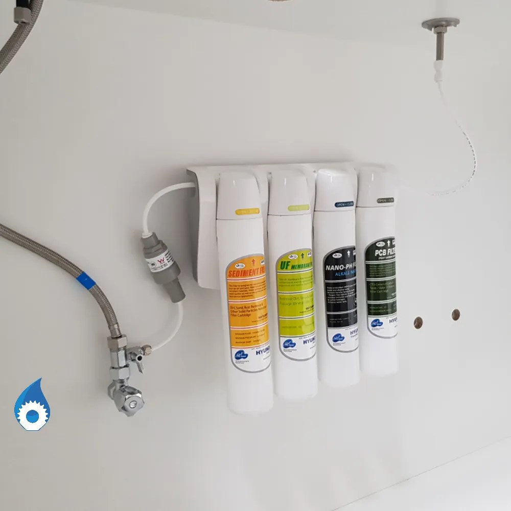 - Filtration: 4-stage (sediment pre-filter, post carbon block, ultra filtration membrane, final carbon block)
