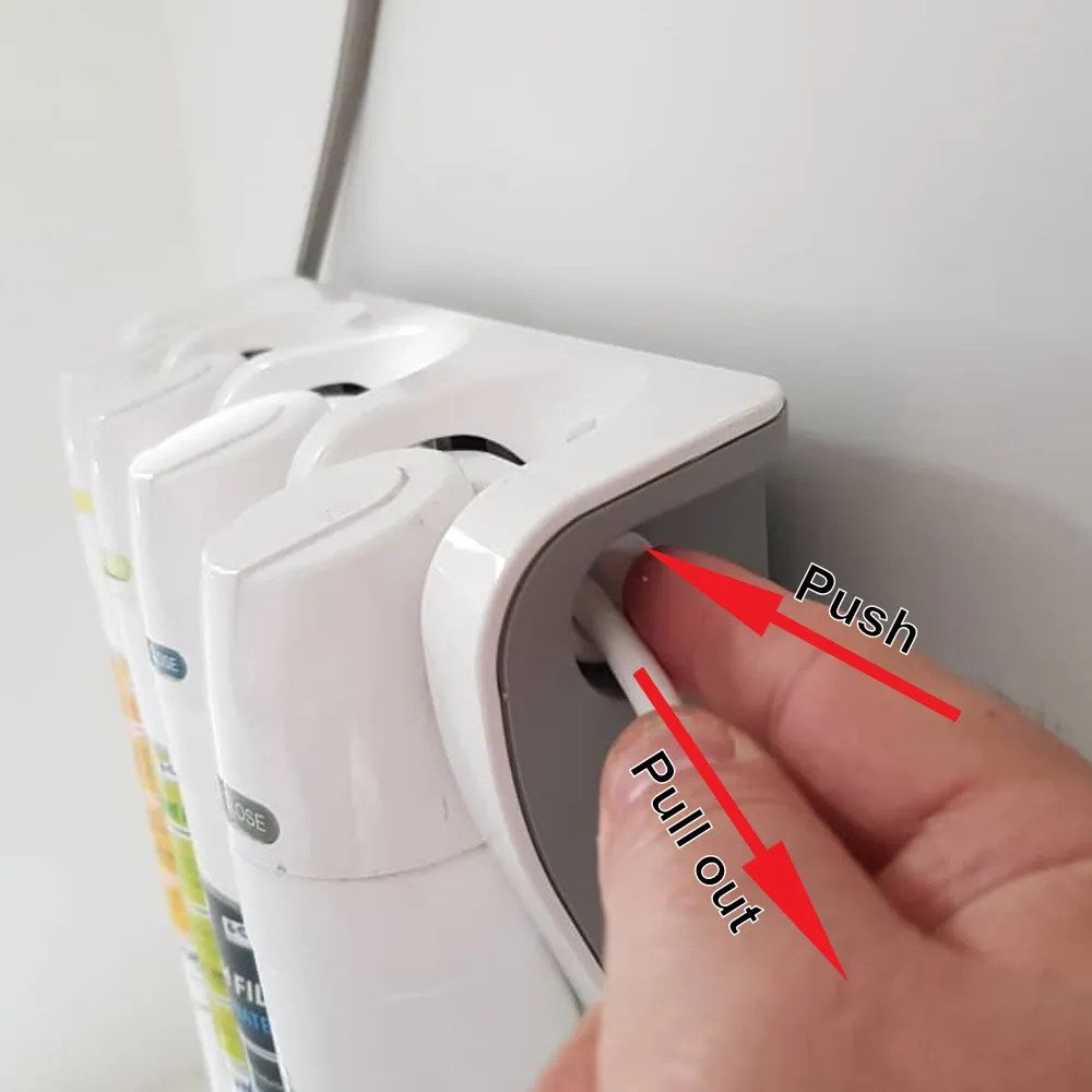 The compact, slimline system, it can be installed vertically or horizontally, so it never hogs your storage space or interferes with your bins. The patented color-coded cartridges twist in and out easily, meaning easy installation and no more complicated filter changes.