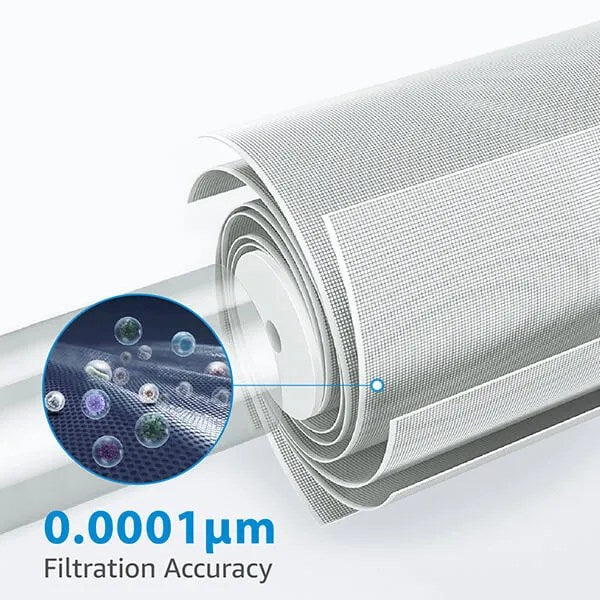 - 0.0001-micron high-precision reverse osmosis membrane and a post activated carbon block.