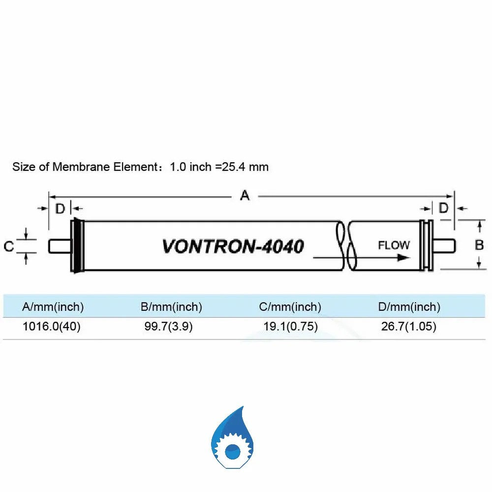 Vontron ULP 4040 series of low pressure RO membrane element are based on a 10.3 bar (150 PSI) test pressure.