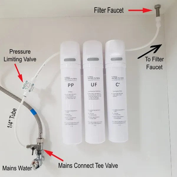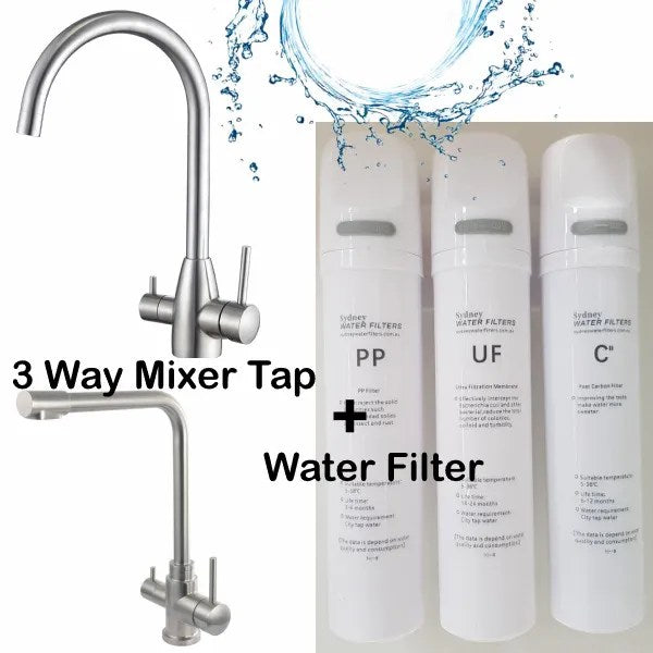 Stainless Steel 3 Way Mixer Tap with Triple Under Sink Water Filter